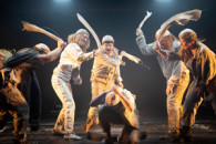 Der junge Hildegunst von Mythenmetz will einmal ein berühmter Schriftsteller werden. Aber er weiß nicht, wie das gehen soll. Als ihm ein perfektes Manuskript in die Hände fällt, begibt er sich auf die Suche nach dem geheimnisvollen Verfasser, um sich von ihm unterrichten zu lassen. Seine Reise führt ihn nach Buchhaim, der legendären „Stadt der Träumenden Bücher“. Dort sind Bücher nicht nur spannend, komisch oder lehrreich, sie leben, können beißen, ja sogar vergiften. Je tiefer Hildegunst in die Geheimnisse dieses faszinierenden Ortes eintaucht, desto gefährlicher wird es für ihn. Schließlich landet er in den Katakomben tief unter der Stadt. In diesem Labyrinth leben nicht nur friedliebende Buchlinge, sondern auch wilde Bücherjäger und der mysteriöse Schattenkönig. Wird Hildegunst alle Abenteuer bestehen? Wird er sein Ziel erreichen? Walter Moers fantastische Reise in das Reich der Bücher ist eine der schönsten und größten Liebeserklärungen an das Lesen und die Literatur. „Die Stadt der Träumenden Bücher“ stand monatelang auf den Bestsellerlisten und wurde in viele Sprachen übersetzt. In ihrer vor Einfällen nur so strotzenden Geschichte hat der ungarische Regisseur Viktor Bodo eine seelenverwandte Vorlage entdeckt, die er als rasantes Theaterspektakel für die ganze Familie in Szene setzt. Gänsehaut und Lachen garantiert. Ab zehn Jahren. Bühnenfassung von Sybille Meier, Anna Veress, Daniel Neumann / Familienspektakel Regie: Viktor Bodo Bühne: Zita Schnábel Kostüme: Eszter Kálmán Musik: Klaus von Heydenaber Musiker: Daniel Buch, Sebastian Hoffmann, Stefan Rager, Sönke Rust, Klaus von Heydenaber Sounddesign: Gábor Keresztes Mediendesign: Vince Varga Choreografie: Emese Cuhorka Licht: Tamás Bányai Dramaturgie: Sybille Meier, Anna Veress, Daniel Neumann 1 Stunde 50 Minuten